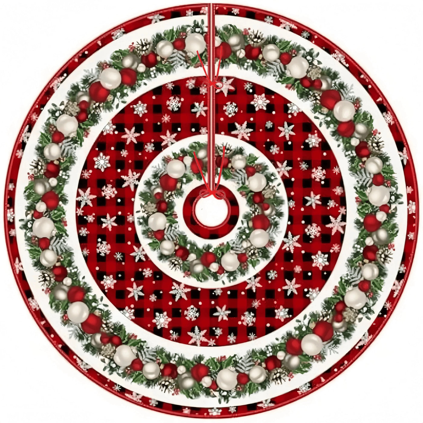 VIKAMA Christmas Tree Skirt Christmas Ambiance Divine Red And Black Checkered Snowflake Christmas Tree Skirt Cushion